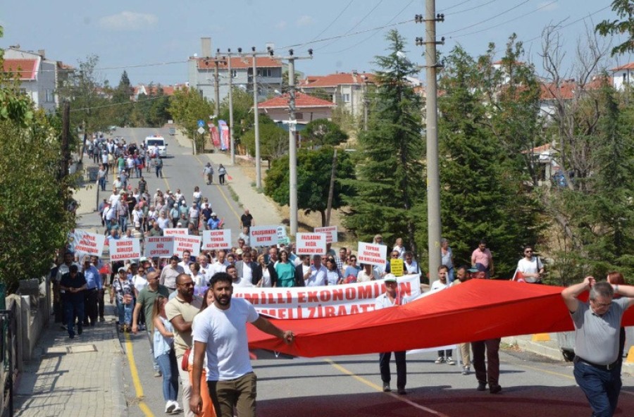 Çakır, verdikleri rahatsızlıktan dolayı özür dilediklerini belirterek, "Ancak haksızlığa uğrayan herkesin yanındayız. Baştan Cumhuriyet Meydanı'na girmemize izin vermediler. Açıklamamızı burada yapacaktık. Ancak toplanma alanımız olan Yeni Mahalle'de yaptık. Bu etkinliği yaparak sesimizi duyurmak istiyorduk. Kağıttan bir açıklama okuyarak, dağılmak istemiyorduk. Çünkü Türk çiftçisinin sorunu, bir beka sorunudur. Yarın öbür gün çiftçilik yapacak ya da yiyecek ekmek bulamayacağız belki de. Tabiri caizse insan eksen insan çıkacak topraklarımızda çiftçiler artık üretim yapmakta zorlanıyorlar" dedi.