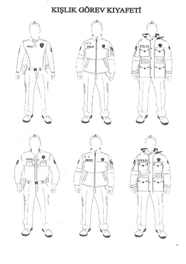 Resmi Gazete'de yayımlanan ve bugün yürürlüğe giren yönetmeliğin ekinde, polis, çarşı ve mahalle bekçilerinin kışlık görev kıyafetleri, kışlık gömlek, bot, eldiven ve ayakkabı şekilleri yer aldı.