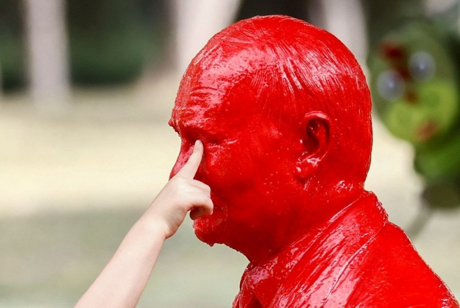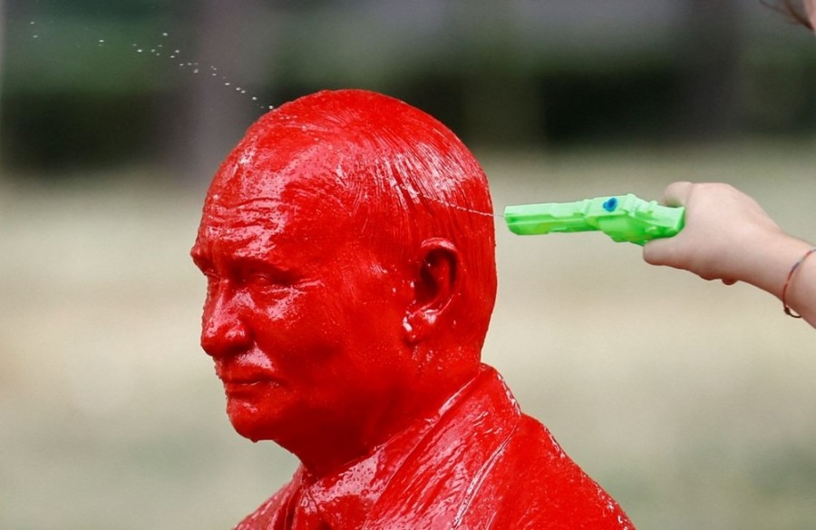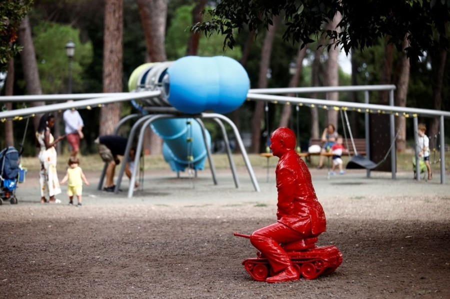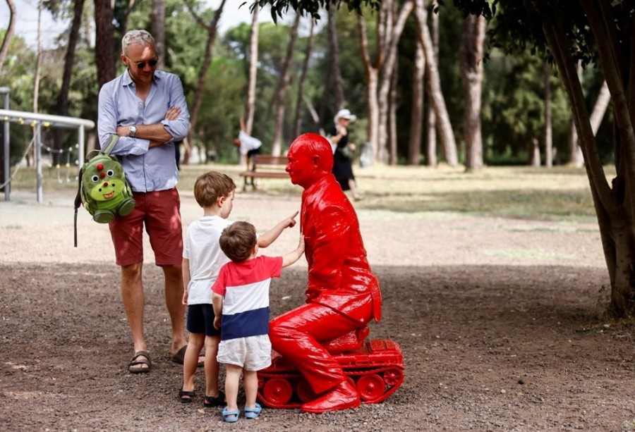 Rusya Devlet Başkanı Vladimir Putin'i minyatür tankın üzerinde otururken tasvir eden bir heykel, bu kez İtalya'nın başkenti Roma'da bir parka konuldu. Heykeli yapan Fransız sanatçı, Ukrayna savaşına ve Putin'in çocukça olarak nitelendirdiği davranışlarına dikkat çekmeyi hedeflediğini belirtiyor.