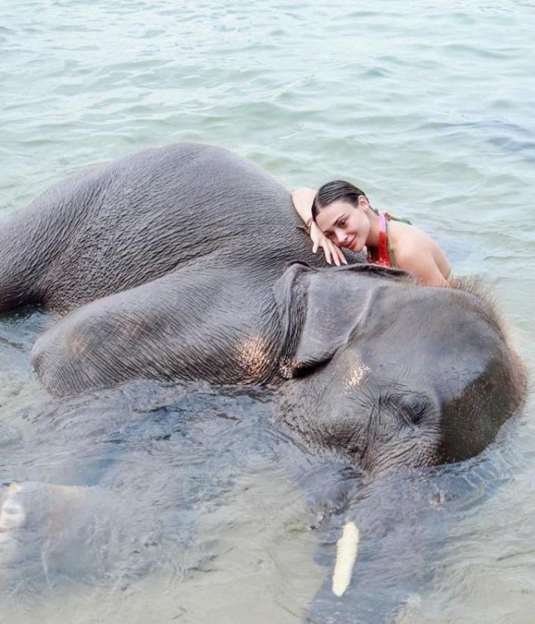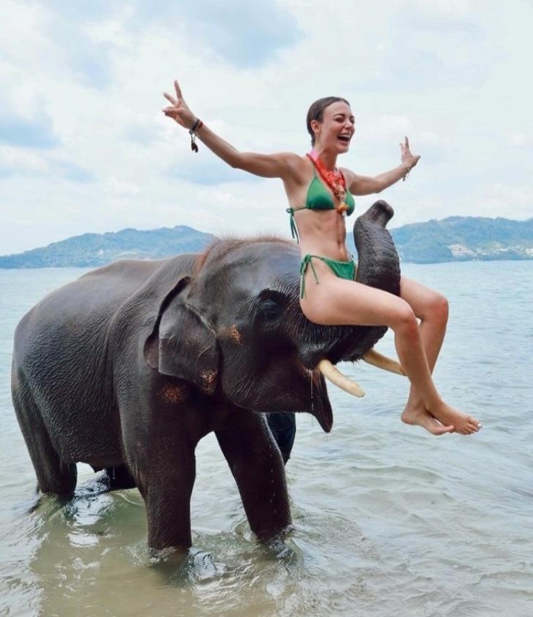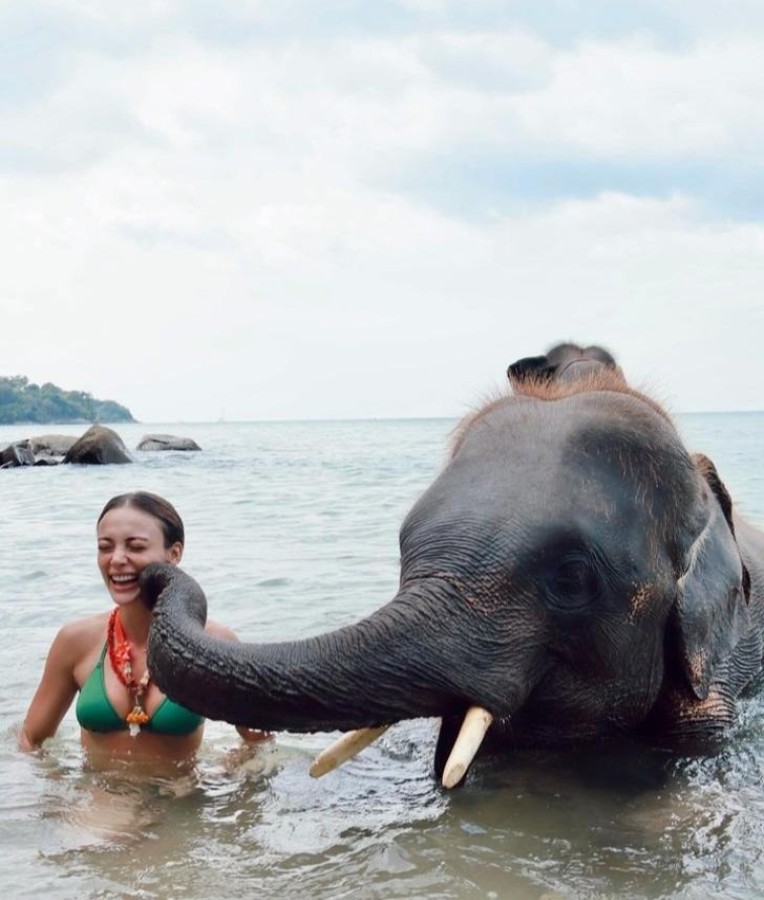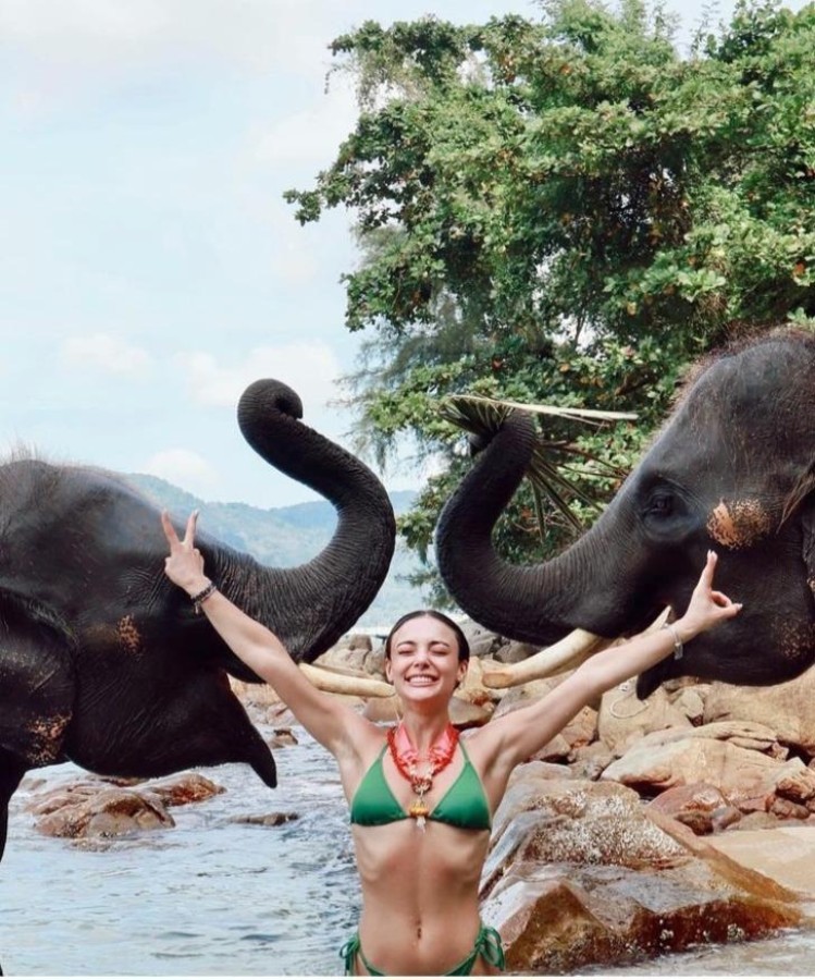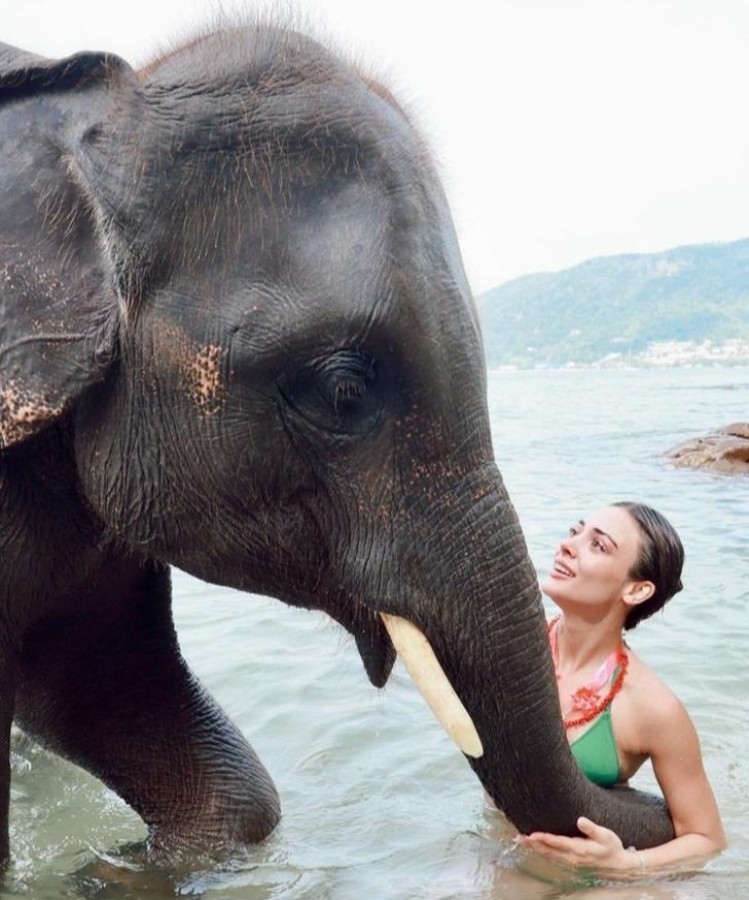 En son Kanal D ekranlarında yayınlanan Veda Mektubu dizisiyle izleyici karşısına çıkan ünlü oyuncu tatil için Tayland'a gitti. Bikinili pozlarıyla fiziğini sergileyen güzel oyuncunun asıl pozları fil ile olanlardı.