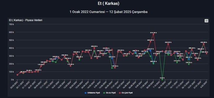 Geçen sene bu tarihlerde 400 TL fiyat konuşuluyordu. Ramazan ortasından sonra fiyat 310-320'lere indi. Bugüne kadar da 320'lerden tekrar 400 konuşulmaya başlandı. Kısacası bu fiyat geçen sene olmuştu ama işsizlik, Et ve Süt Kurumu'nun (ESK), yapmış olduğu ithalat ve kamunun yapmış olduğu müdahale ile alımlarla beraber fiyat bir şekilde baskılandı, dengelendi. Ama bugün itibarıyla tabii ki üreticinin de böyle beklenti içerisinde olması, pazarın da ilk kez biraz canlı olması, bu fiyatlarda hareketliliğe sebep oluyor.