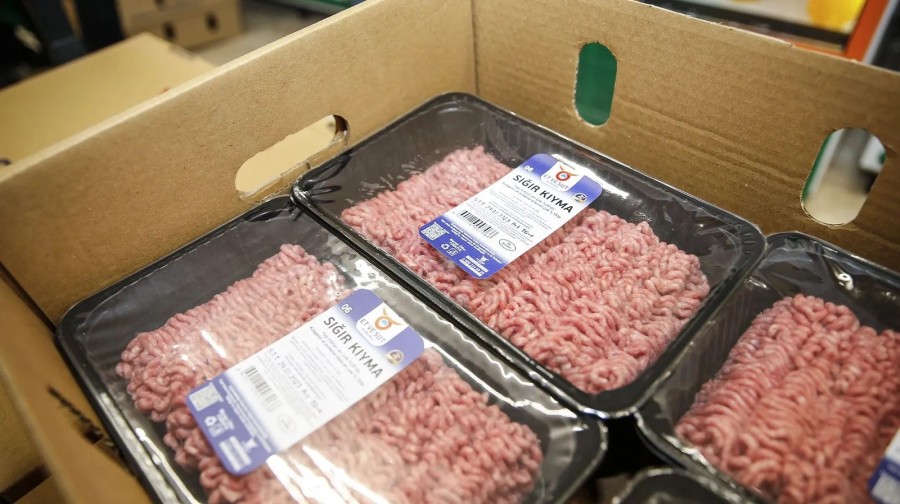 Bu kapsamda Et ve Süt Kurumu tarafından ambalajlanmış 1'er kiloluk kıyma ve kuşbaşı paketleri raflarda yerini aldı.