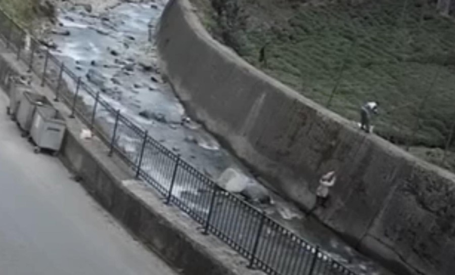 Olay anı ise çevredeki özel çay fabrikasına ait güvenlik kamerasına yansıdı. Görüntüde, teleferik telini tutan 2 kişinin, aniden çıkan alev sonrası akıma kapılıp, dereye düştüğü görülüyor.