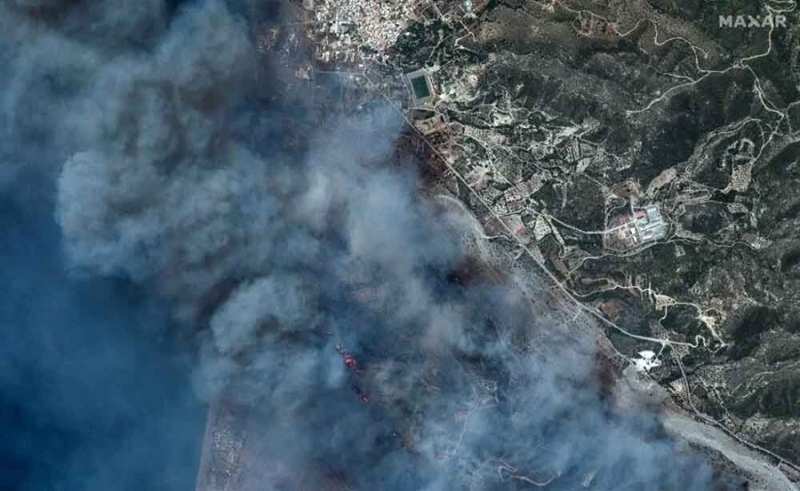 ABD'li uydu şirketi Maxar, Rodos ce Korfu adalarında süren yangınların verdiği hasarı çarpıcı bir şekilde ortaya koyan uydu görüntüleri paylaştı.