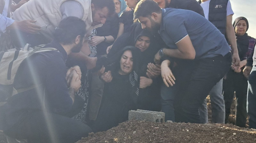 Kılınan namazın ardından, Rojin'in tabutu kadınların omzunda defnedileceği alana getirilerek toprağa verildi. Defin işleminin ardından Babası Nizamettin Kabaiş ve bazı yakınları Rojin'in mezarına kapanarak gözyaşları döktü.