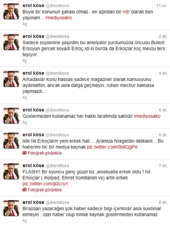 Ardından attığı tweetlerde Erol Köse, şu ifadeleri kullanmıştı: