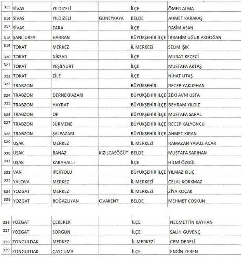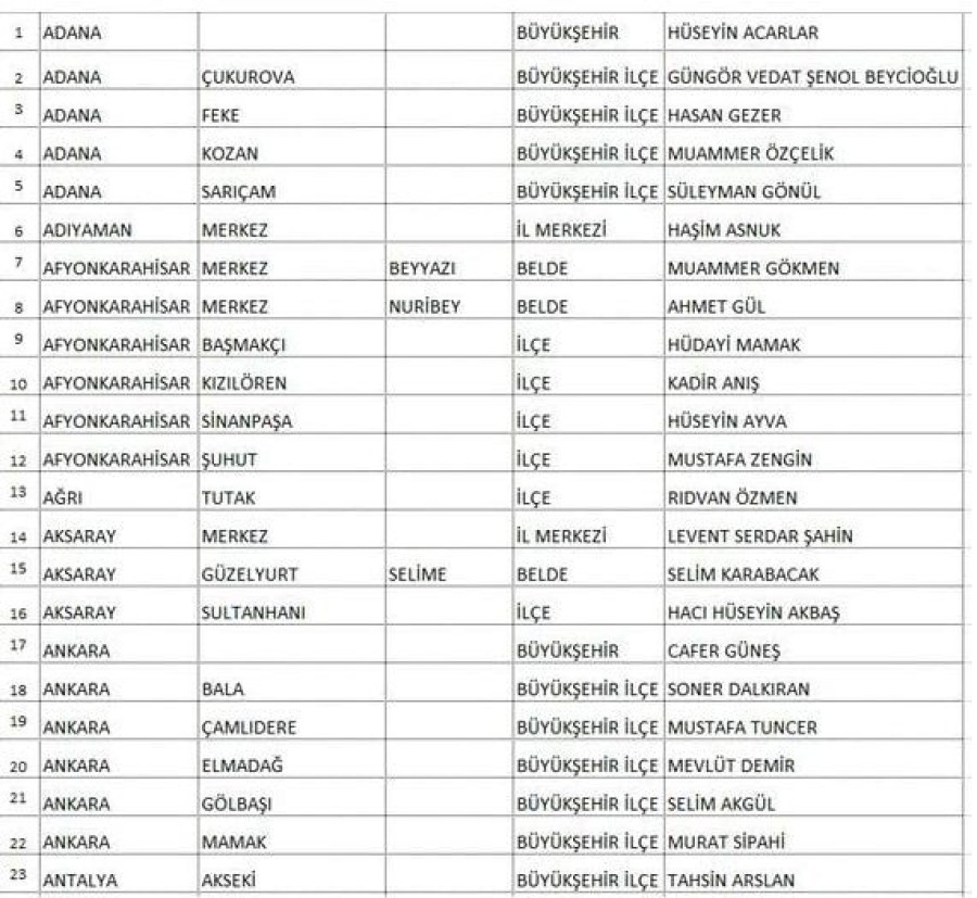 Karamollaoğlu, toplantının ardından adaylarını açıkladı. Açıklanan adayların tamamı şöyle: