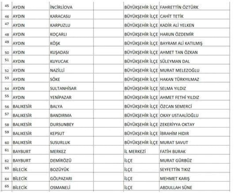 50 AYDIN KUŞADASI BÜYÜKŞEHİR İLÇE AHMET TAN ÖZKAN