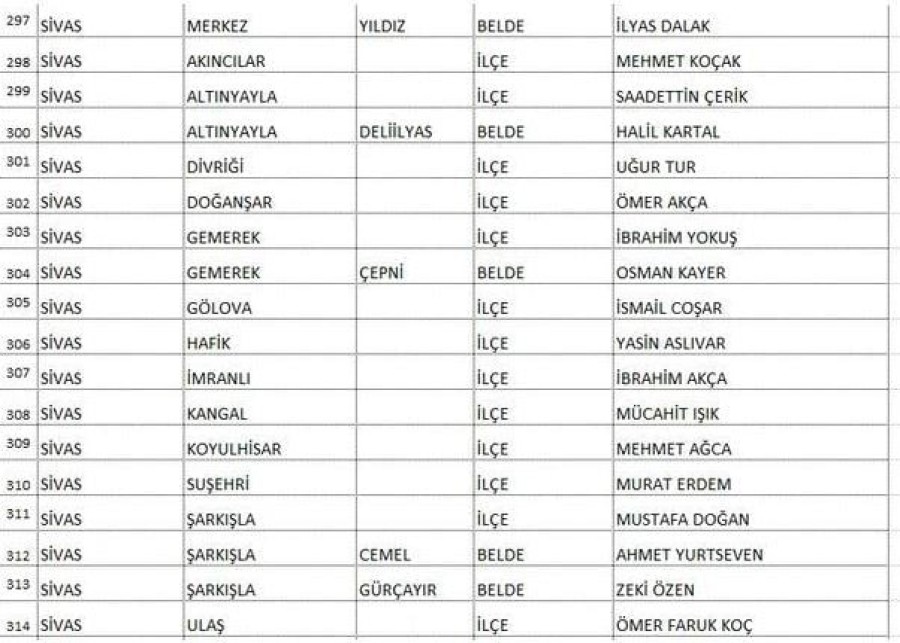 298 SİVAS AKINCILAR İLÇE MEHMET KOÇAK