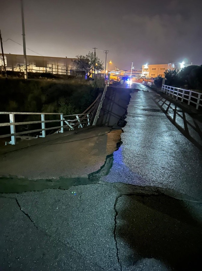 Balıkesir'in Edremit ilçesinde etkili olan sağanak yağış nedeniyle Zeytinli Çayı üzerinde bulunan karayolu köprüsü çöktü.