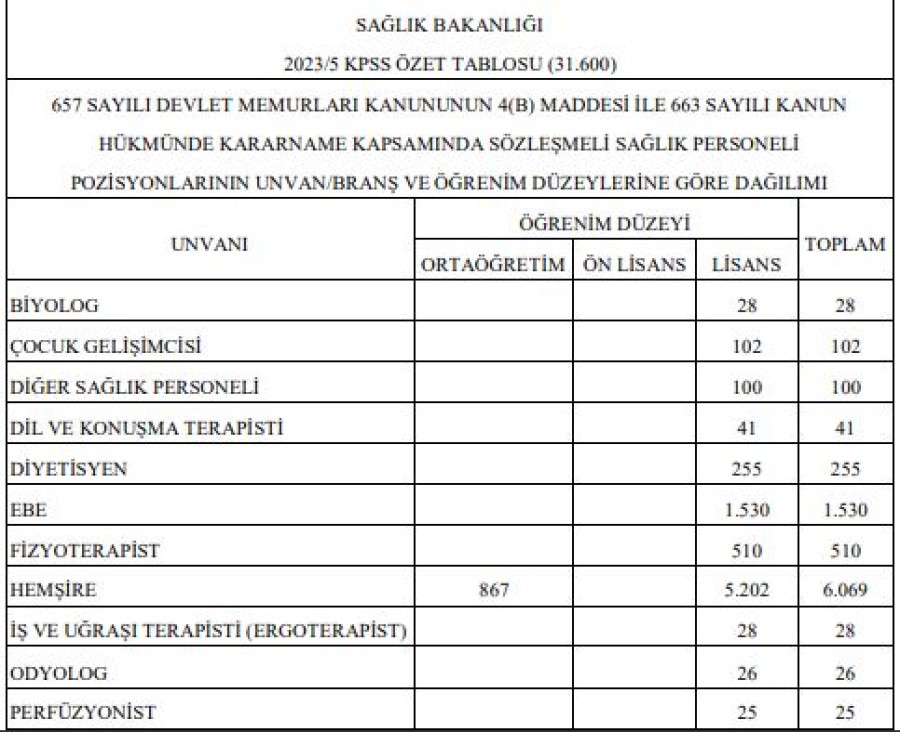 Bakanlık, 31 bin 600 sözleşmeli sağlık personeli alımı için ilana çıktı. Adaylar tercihlerini 3 Nisan'a kadar yapacak.