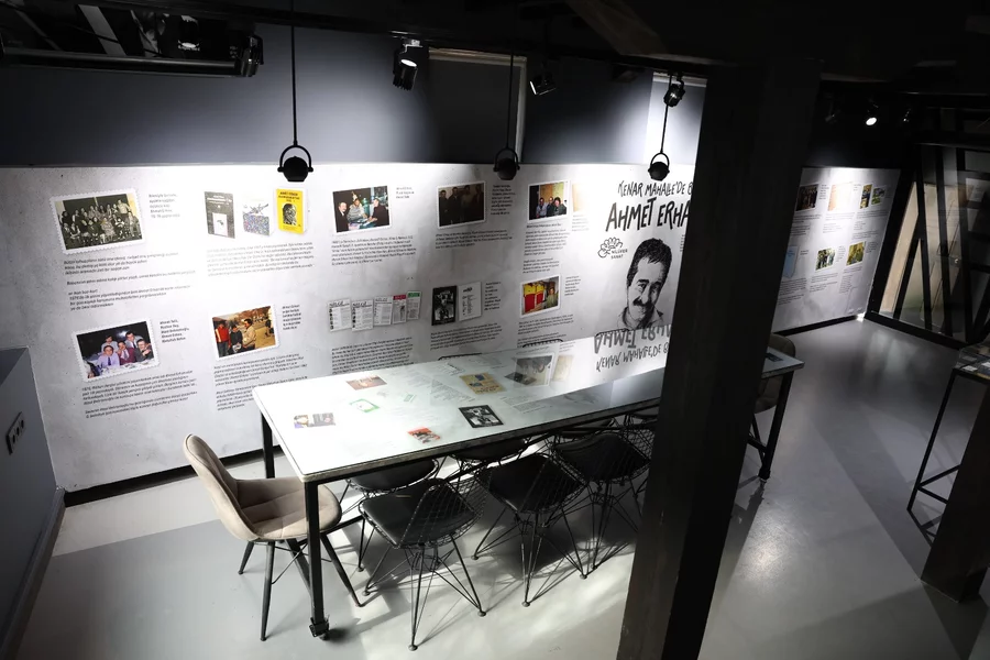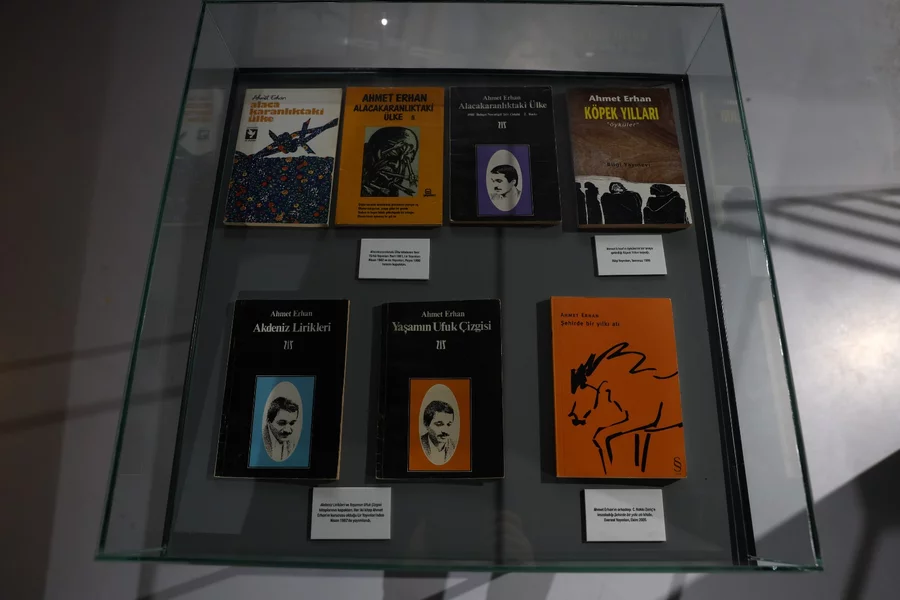 Açılışı yapılan "Kenar Mahallede Bir Ahmet Erhan" sergisi, şairin dünyasına görsel bir yolculuk sunuyor. Küratörlüğünü C. Hakkı Zariç'in yaptığı sergide; Ahmet Erhan'ın kitaplarının ilk baskıları, kişisel fotoğrafları, mektupları ve özel eşyaları yer alıyor.