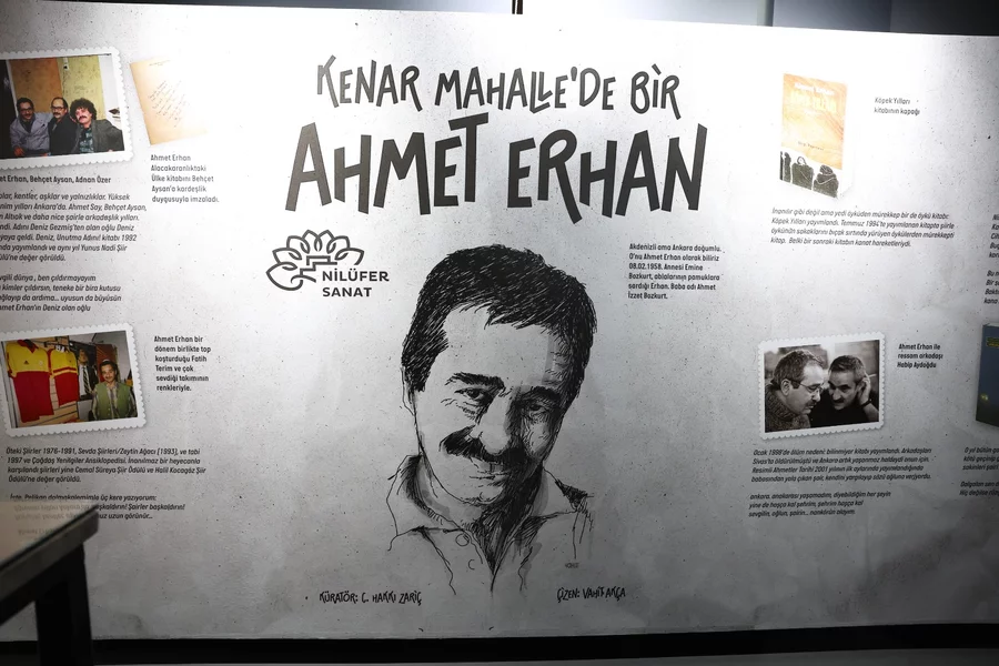 Şairin yaşam serüveninin ve kuşağının geçmişine ışık tutan "Kenar Mahallede Bir Ahmet Erhan" sergisi, 30 Eylül tarihine kadar Nilüfer Belediyesi Edebiyat Müzesi'nde görülebilir.