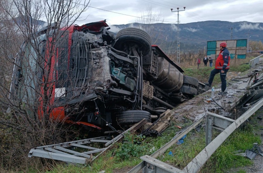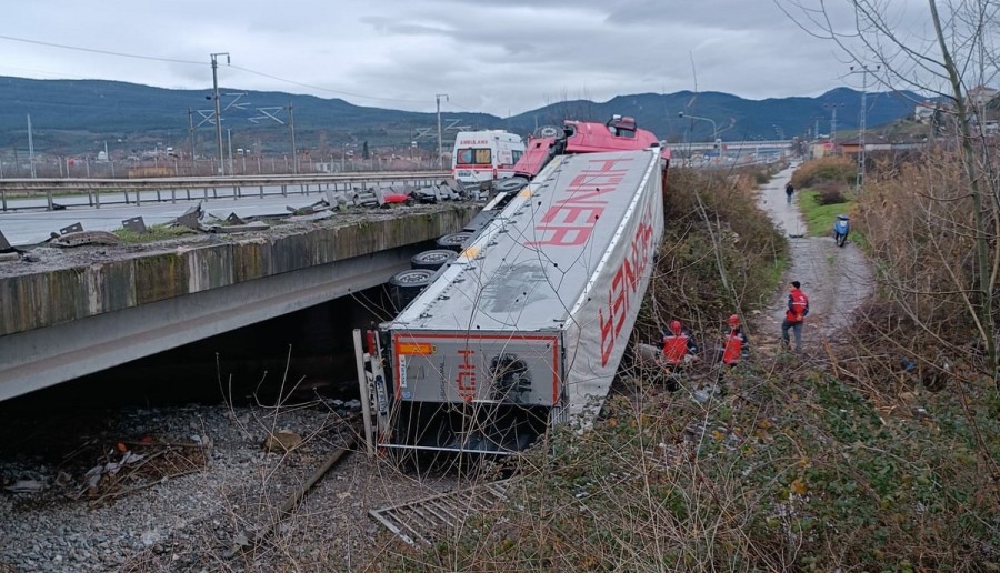 Sakarya'nın Pamukova ilçesinde dereye devrilen tırın sürücüsü yaralandı. Sürücü hastaneye kaldırıldı.