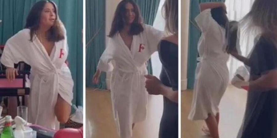 Salma Hayek, Instagram'da 24 milyon takipçiye ulaşmasını kutlamak için bornozlu şekilde dans ederek kutlama yaptı.