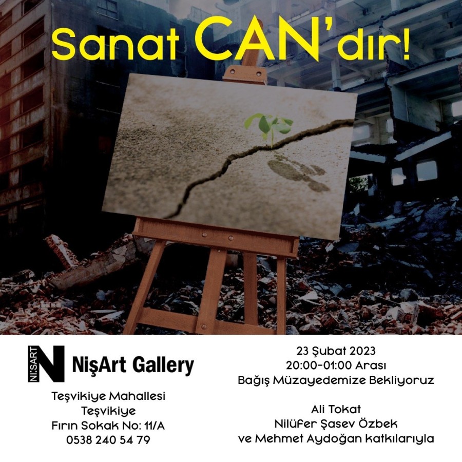 Türkiye'yi yasa boğan Kahramanmaraş depremlerinin ardından birlik olan ülkenin önde gelen sanatçıları depremzedeler için "Sanat Can'dır" isimli bağış müzayedesi düzenleyecek. 23 Şubat Perşembe günü yapılacak müzayedden elde edilen gelirler AHBAP ve AFAD üzerinden depremzedelere bağışlanacak.