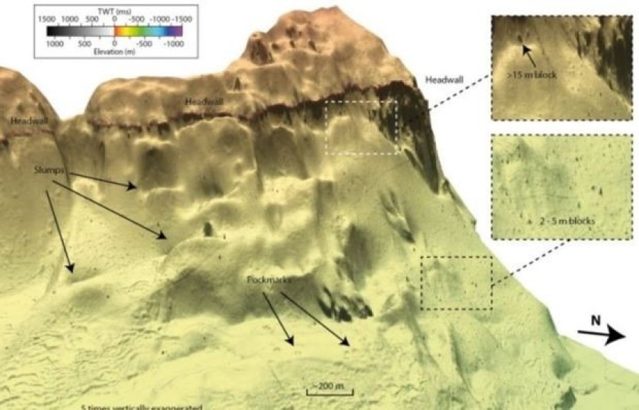 Science Direct'te yayınlanan, 15 Ağustos 2023 tarihli, bölgedeki deniz tabanına ilişkin en kapsamlı raporun, "Minos patlaması sırasında dalgalı deniz tabanı yatak biçimlerinin oluşumu" bölümünde, adanın barındırdığı risklere dikkat çekildi. Rapor, Santorini ve çevresinin deniz tabanın çok kapsamlı haritalandırılması ile hazırlandı.