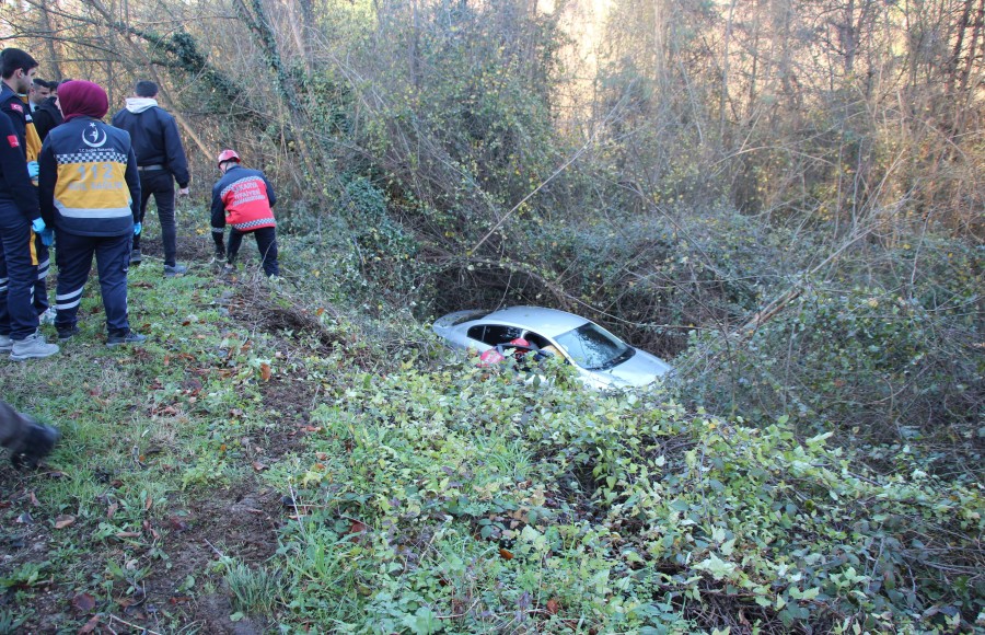 Sakarya'da şarampole uçan otomobilin sürücüsü itfaiye ekiplerince kurtarılarak sağlık ekiplerine teslim edildi.
