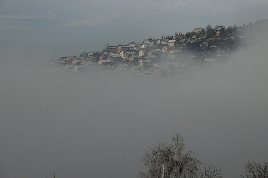 Saraybosna, hava kirliliği sebebiyle yaklaşık 10 dakikalık sürüş mesafesiyle ulaşılan Trebevic Dağı'ndan neredeyse görünmez hale geldi.