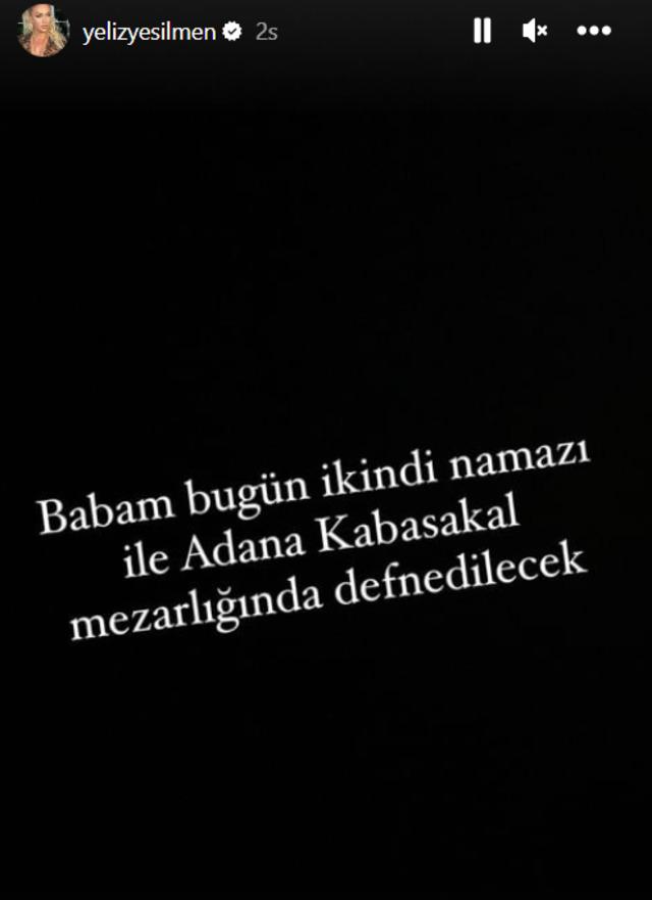Uzun süredir ailesinin yanından ayrılmayan ve sık sık babası için dua isteyen Yeliz Yeşilmen, Instagram hesabından yaptığı paylaşımla acı haberi duyurdu.