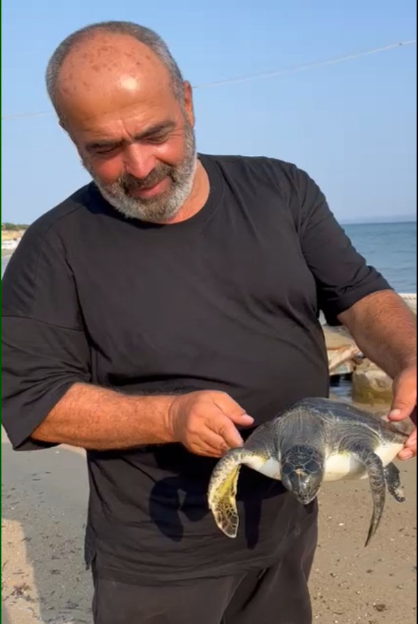 Canlı bulduğu caretta cerettayı tekrar denize bırakan Mustafa Altunhan, ilk kez böyle bir durumla karşılaştığını belirtti.