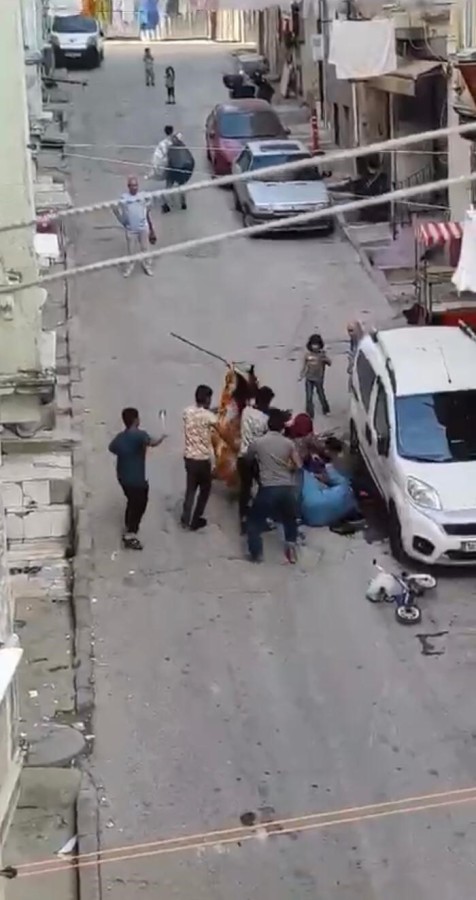 Tartışmanın alevlenmesiyle iki kadın saç baş birbirine girerken, sokakta bulunan diğer şahıslar da ellerine aldıkları satır ve sopalarla olaya dahil oldu.