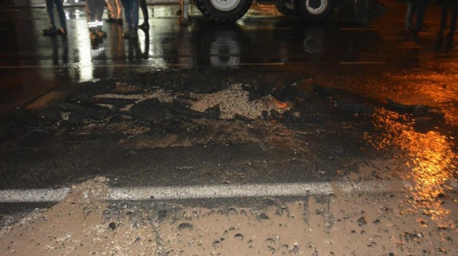 Yoldaki yarığın büyüme ihtimaline karşı cadde trafiğe kapatıldı.