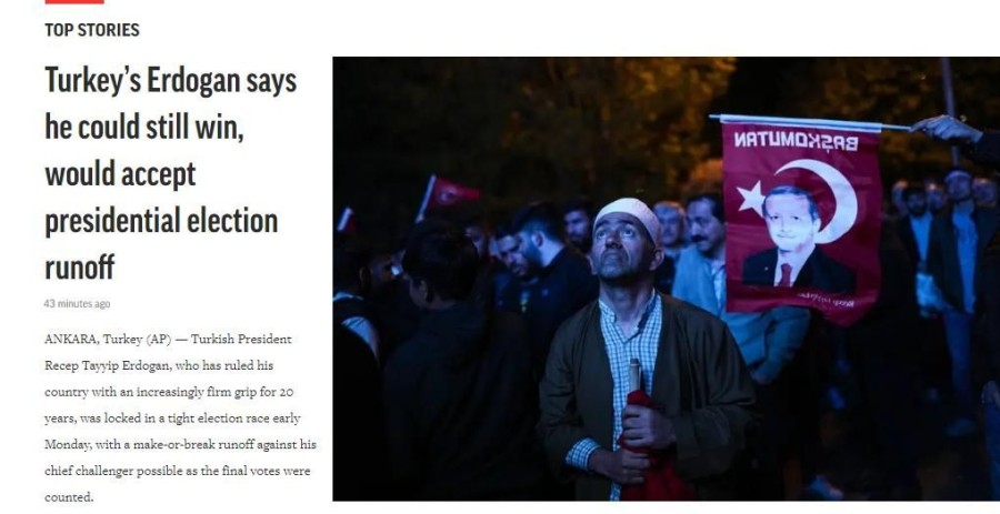 Associated Press de Cumhurbaşkanı Erdoğan'ın konuşmalarına yer verdi. Seçimin ikinci tura kalması halinde ülkenin kararına saygı duyacaklarını söylediği aktarıldı.