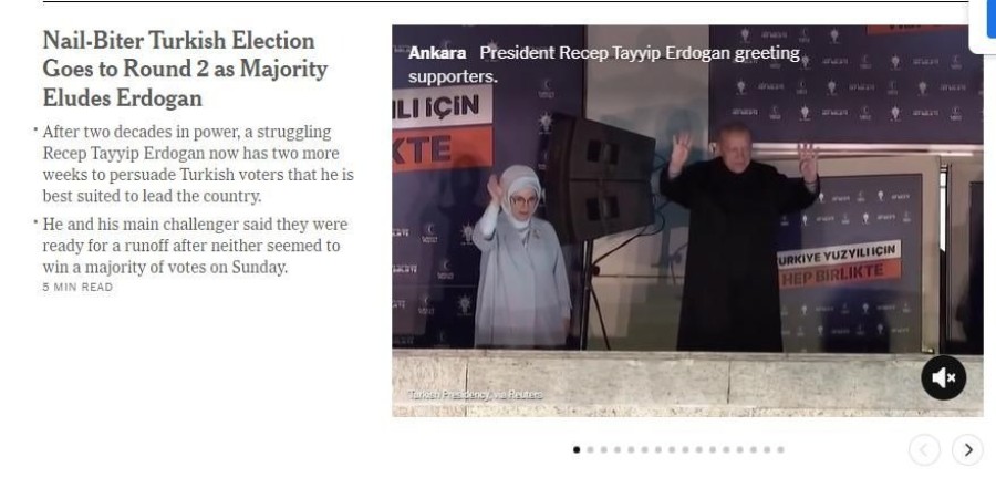 Seçimle ilgili genel bilgilere yer veren The New York Times, 5 milyon genç seçmenin ilk kez sandık başına gittiğine vurgu yaptı. Erdoğan ve Kılıçdaroğlu'nun ikinci tur mesajlarını paylaştı.
