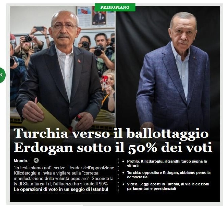 İtalyan haber ajansı ANSA, seçime dair haberlerinde TRT'nin yayınlarını kaynak gösterdi. Seçime katılımın yüzde 90'ın üzerinde olduğuna değinildi.
