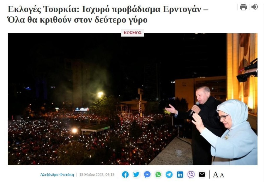 Yunan In.gr, Erdoğan'ın konuşmasını okuyucularla paylaşarak, ikinci tur seçimlerin 28 Mayıs'ta olacağı bilgisini verdi.