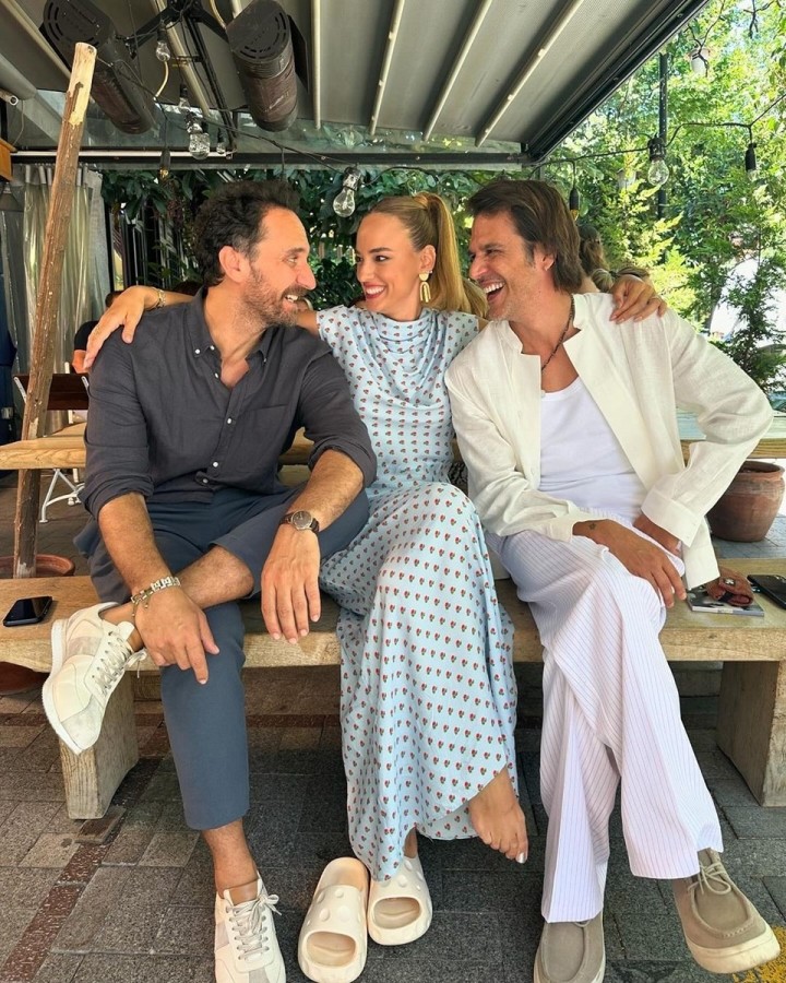 Şimdilerde "Gelin Takımı" adlı sinema filminin çekimleri için Bodrum'da olan Seda Bakan, rol arkadaşları Mehmet Günsür ve Fırat Çelik ile objektif karşısına geçti.