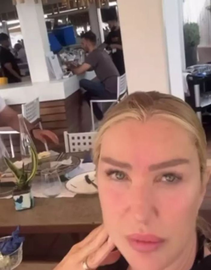 Seda Sayan, tatilden paylaştığı videoda arkasında iş yapan garsona öfkelendi.