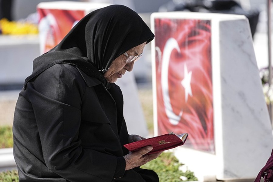 Erken saatlerden itibaren şehitliğe gelen şehit aileleri ve gaziler, Türk bayraklarıyla donatılmış kabirlerin bakımlarını yaptı, Kur'an-ı Kerim okudu ve dua etti.