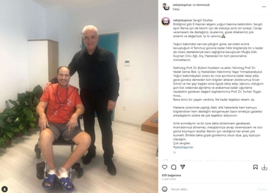 Artık evimdeyim ve bir süre daha dinlenmem gerekecek. Aramalarınıza dönemez, mesajlarınıza cevap veremezsem ne olur gönül koymayın dostlar. Benim için verdiğiniz her emek çok kıymetli. Birlikte daha güzel günlerimiz olsun diye, güç topluyor olacağım. Çok sevgiler."