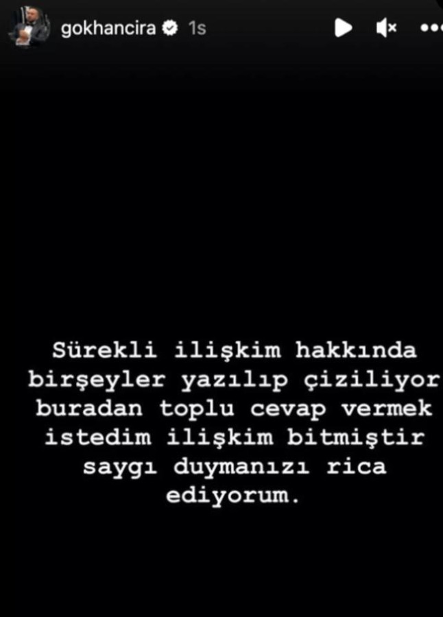Gökhan Çıra paylaşımında "Sürekli ilişkim hakkında bir şeyler yazılıp çiziliyor. Buradan toplu cevap vermek istedim, ilişkim bitmiştir. Saygı duymanızı rica ediyorum" dedi.