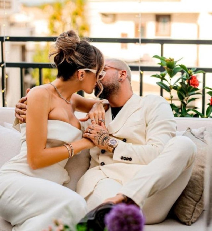 Keleş nişan töreninde straplez kesim beyaz bir elbise giyerek saçlarını da topuz yaptırmıştı. Çıra ise siyah tişörtün üzerine beyaz takım elbise tercih etmişti.