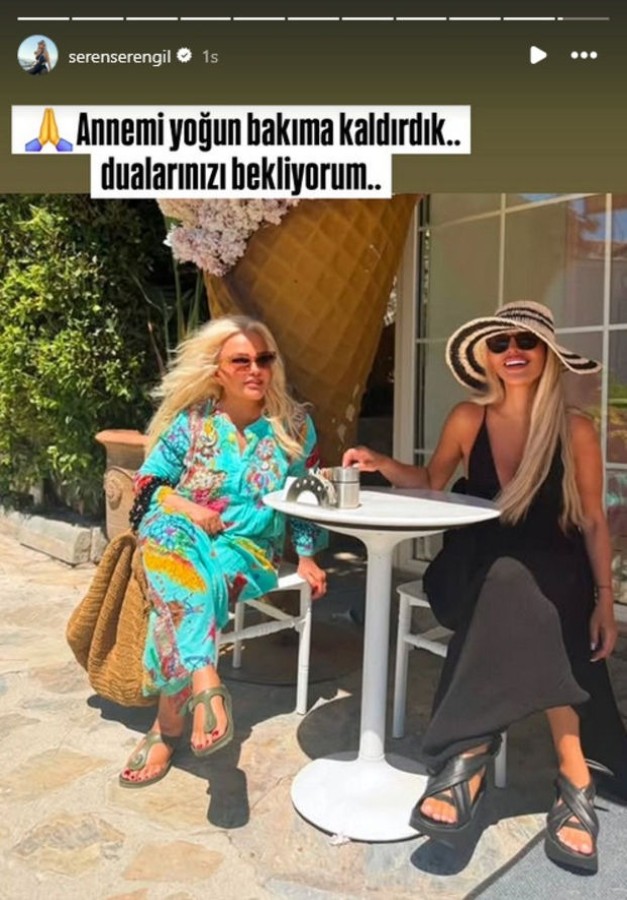 Seren Serengil, annesinin yoğun bakımda tedavi gördüğünü duyurdu. Serengil, sosyal medya hesabından yaptığı açıklamada; "Annemi yoğun bakıma kaldırdık. Dualarınızı bekliyorum" dedi.