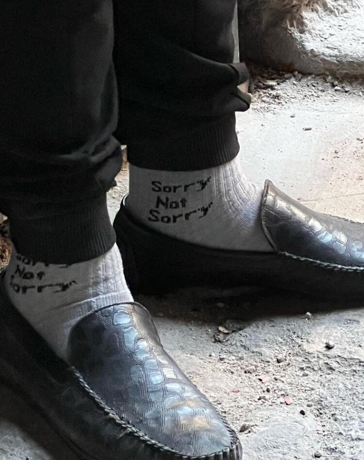Oyuncu, "Ayak değil palet" yorumlarına; çorabının üzerindeki yazıyla karşılık verdi. Sarıkaya, 'Sorry not sorry' (Üzgün olmadığım için üzgünüm) yazılı çorabıyla, atılan mesajlara cevap vermiş oldu.