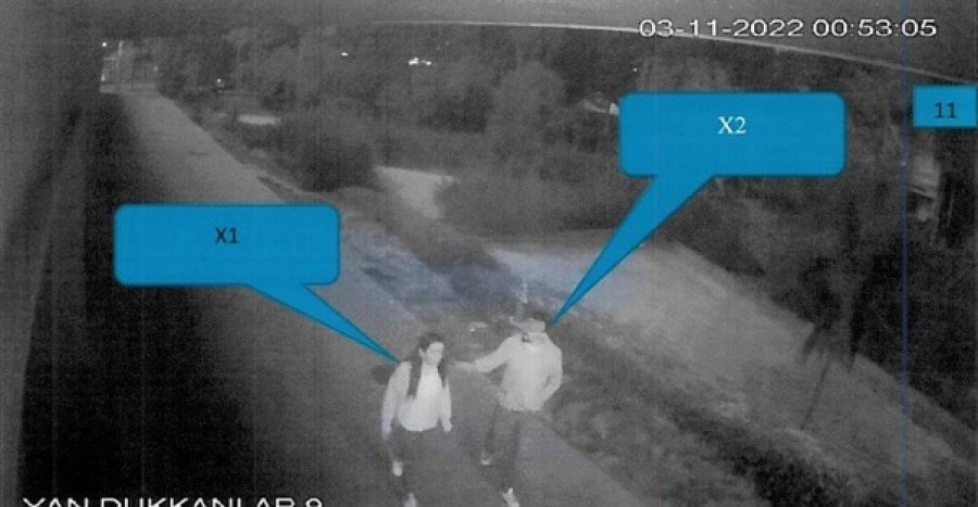 Öte yandan, olay gecesi genç kadın ve sevgilisi E.T.'nin sitede tartıştığı, sevgilisinin genç kadını bıçakla tehdit ettiği, genç kadının korkudan ellerini başına doğru kapattığı kameralara doğru yansıdı. Banyoda kan izinin bile bulunmadığı olayda yine şüpheli E.T.'nin, aşağıdan vilada kovası da aldığı kameralarca kaydedildi.