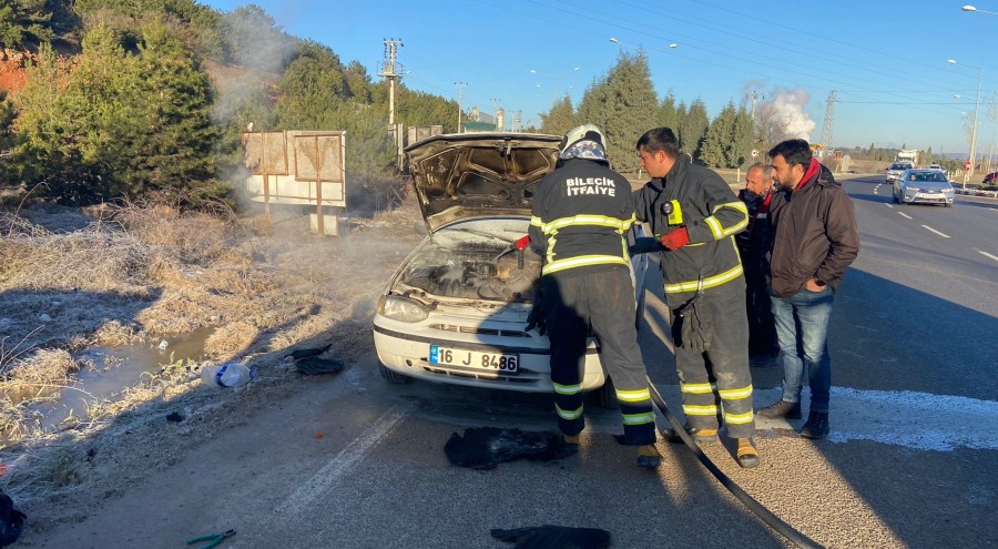 Aracı hemen soğukkanlılıkla sağ tarafa çeken sürücü 112'yi aradı. Olay yerine gelen Bilecik Belediyesine ait itfaiye ekibi araca hemen müdahale etti.