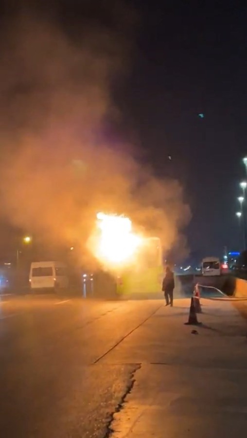 Edinilen bilgiye göre, sürücüsünün ismi ve plakası öğrenilemeyen belediye otobüsü seyir halindeyken arka kısmından alev aldı.