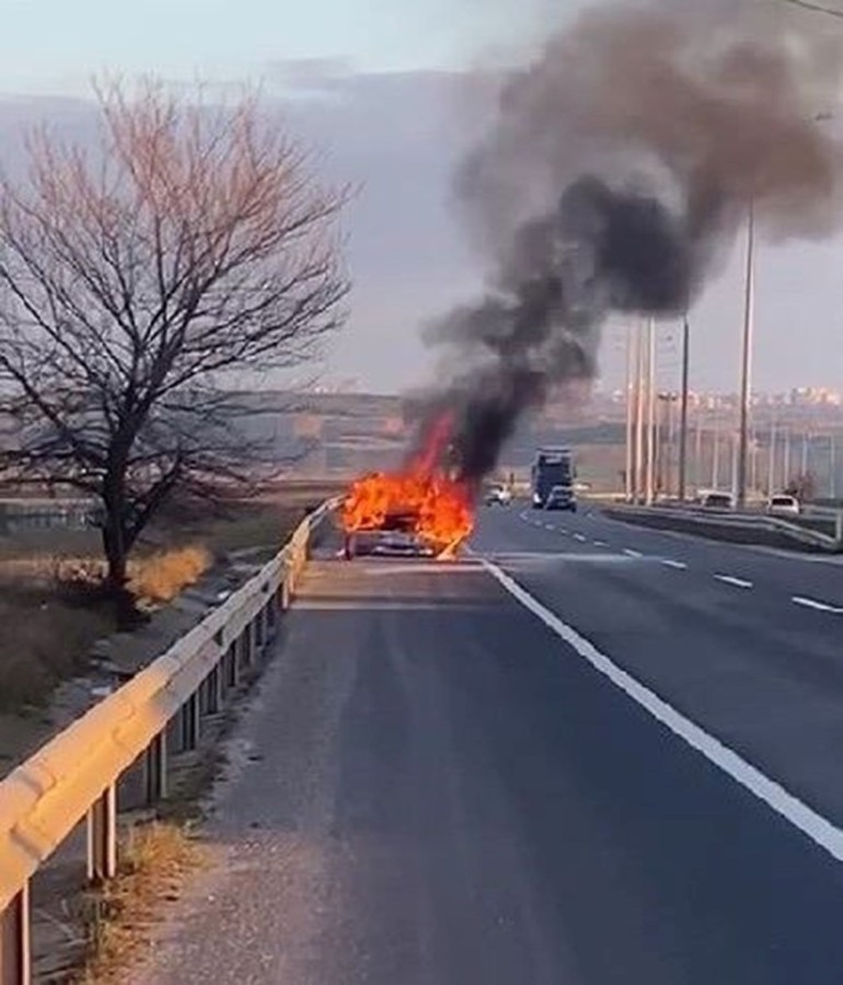 Alevlerin yükselmesinin ardından kısa sürede araç alev topuna döndü.
