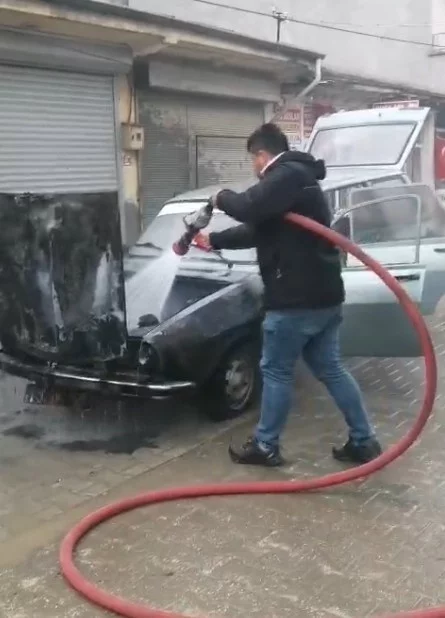 Seyir halindeyken bir anda dumanların yükseldiğini ifade eden sürücü Şükrü Eralp, "Baktım araçtan duman çıkıyor, ben de durdurup indim. Aracı kullanmıyordum, bir aydır evinin önündeydi. Ben de bir şeyler alayım diye geldim. Birden bu kadar nasıl yandı, anlamadım. Bununla geçmiş, Allah'tan etrafa zarar vermedi" dedi.