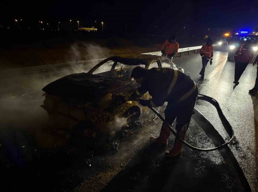 Aracın motor kısmından dumanların yükseldiğini fark eden sürücü, otomobili emniyet şeridine park ederek durumu 112 Acil Çağrı Merkezi'ne bildirdi. Kısa sürede büyüyen alevler tüm otomobili sardı. İhbar üzerine bölgeye itfaiye ve otoyol jandarma ekipleri sevk edildi.