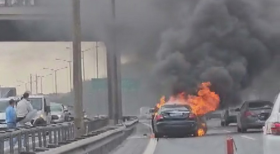 İstanbul Gaziosmanpaşa'da seyir halindeki otomobil alev alev yandı. İtfaiye ekiplerinin müdahalesiyle söndürülen otomobil kullanılamaz hale geldi. Otomobilin yandığı anlar ise diğer sürücüler tarafından cep telefonu kamerasıyla görüntülendi.