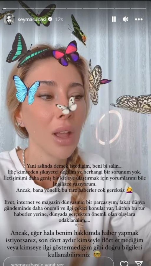 Mohammed Alsaloussi ile 29 Eylül'de tek celsede boşanan Subaşı'nın 53 yaşındaki Formula E CEO'su olan Alejandro Agag ile birlikte olduğu iddia edildi. Ancak Şeyma Subaşı bu iddialardan rahatsız oldu ve hemen açıklama yaptı.