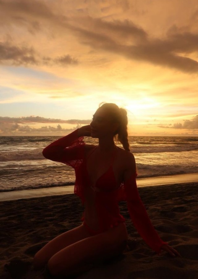 Kırmızı bikinisiyle çekilen pozlarını 2,8 milyon takipçisi bulunan Instagram hesabından paylaştı. Paylaşıma "Kırmızı" notunu düştü.