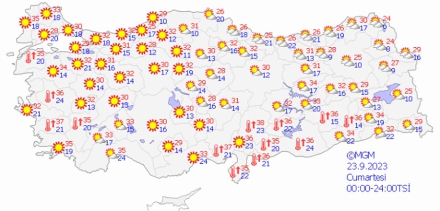 Türkiye genelinde hava sıcaklıklarının Cuma gününden itibaren artarak mevsim normalleri üzerine çıkacak. Bazı illerde sıcaklık 40 dereceye kadar ulaşacak.