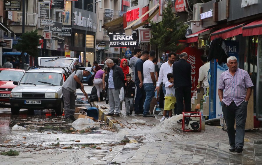 Uşak'ta şiddetli sağanak nedeniyle cadde ve sokaklar suyla doldu; çok sayıda ev ve iş yerini su bastı. Otoparklardaki araçlar suya gömülürken, bir iş merkezinin bodrum katındaki kiliseyi su bastı. Belediye ekipleri su basan yerleri pompalarla tahliye etmek için çalışmalar başlattı.